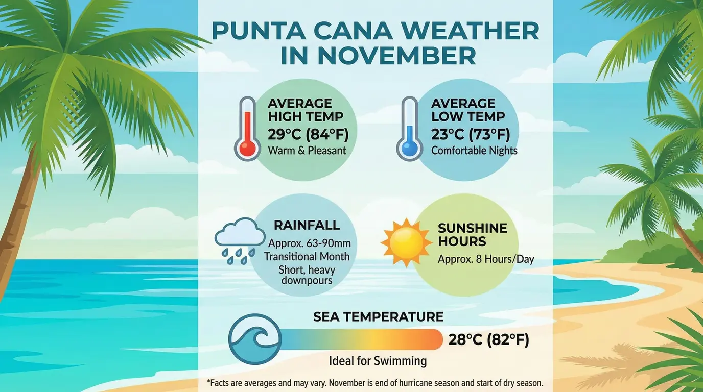 Punta Cana weather in November is often a pleasant surprise for travelers. If you are wondering what the weather is like this time of year, picture warm mornings, occasional refreshing breezes, and water that is perfect for swimming.
